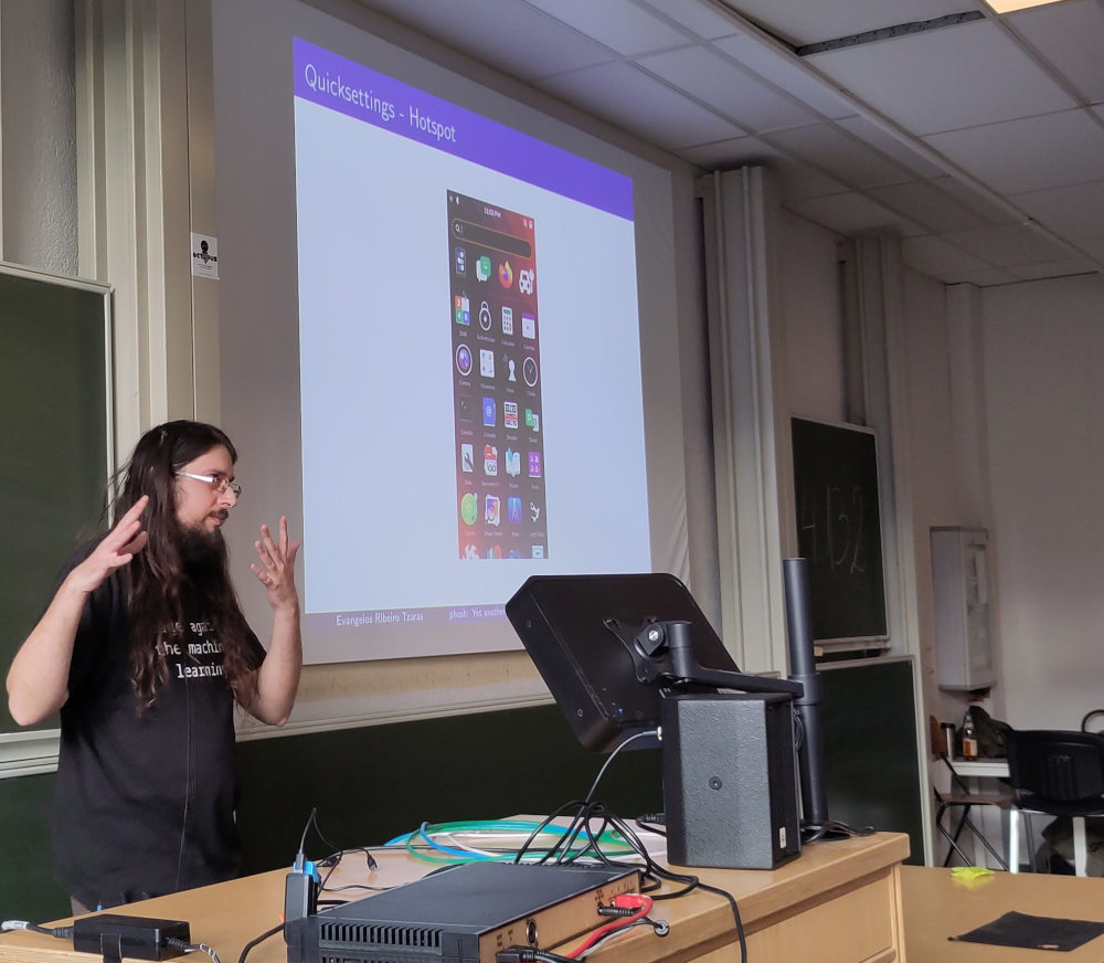 - Podcast: On Sunday we did the traditional podcast recording, this time on the parking lot where we found several tables and benches next to each other, and with several special guests from other projects. Editing will take a bit, consider adding the postmarketOS podcast to your player if you haven't already.